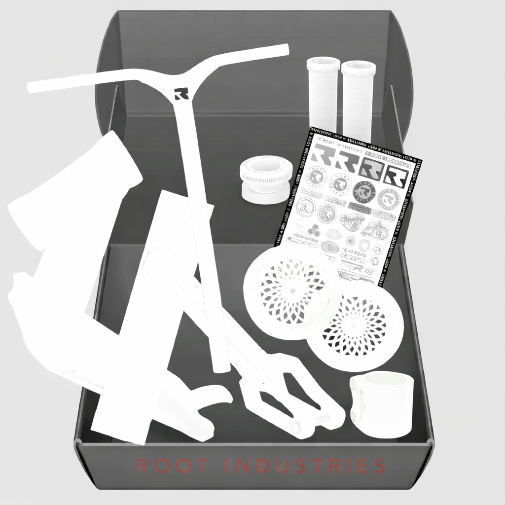 Build your dream scooter from the ground up with the Root Industries $220 Mystery Box - the ultimate all-in-one parts bundle. This box includes everything you need to assemble a fully functional scooter, packed with premium components and rider-approved finishes.