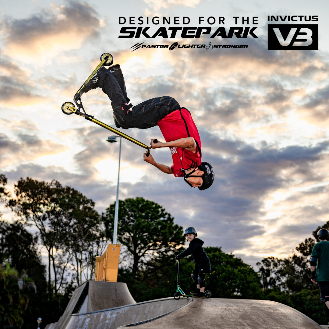 Attention to detail in every component, the Invictus v3 is simply the best pro scooter ever built. The Invictus v3 is packed with premium features, making it the lightest, strongest scooter ever built for the older pro scooter rider.
