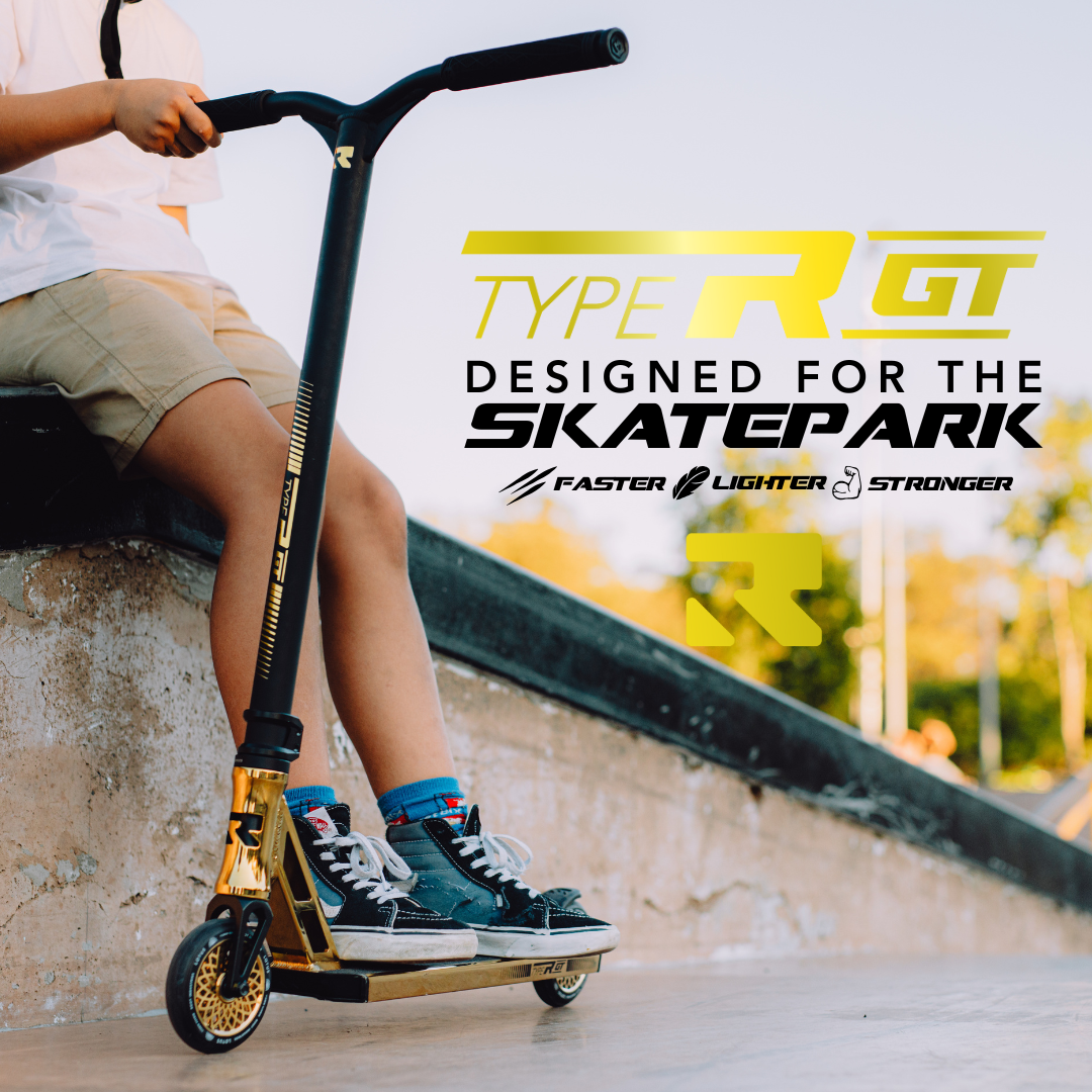 The brand new Type R GT is our lightest pro model scooter to date, and is the world’s lightest pro scooter for its size. Weighing an astonishing 3kgs, with a 5” wide deck and 600mm tall bars, the Type R GT is our most premium scooter in the Type R range.